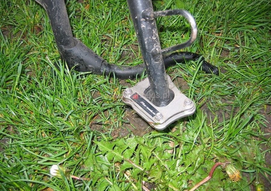 Ułatwia parkowanie na nierównym podłożu, bez ryzyka przewrócenia motocykla.